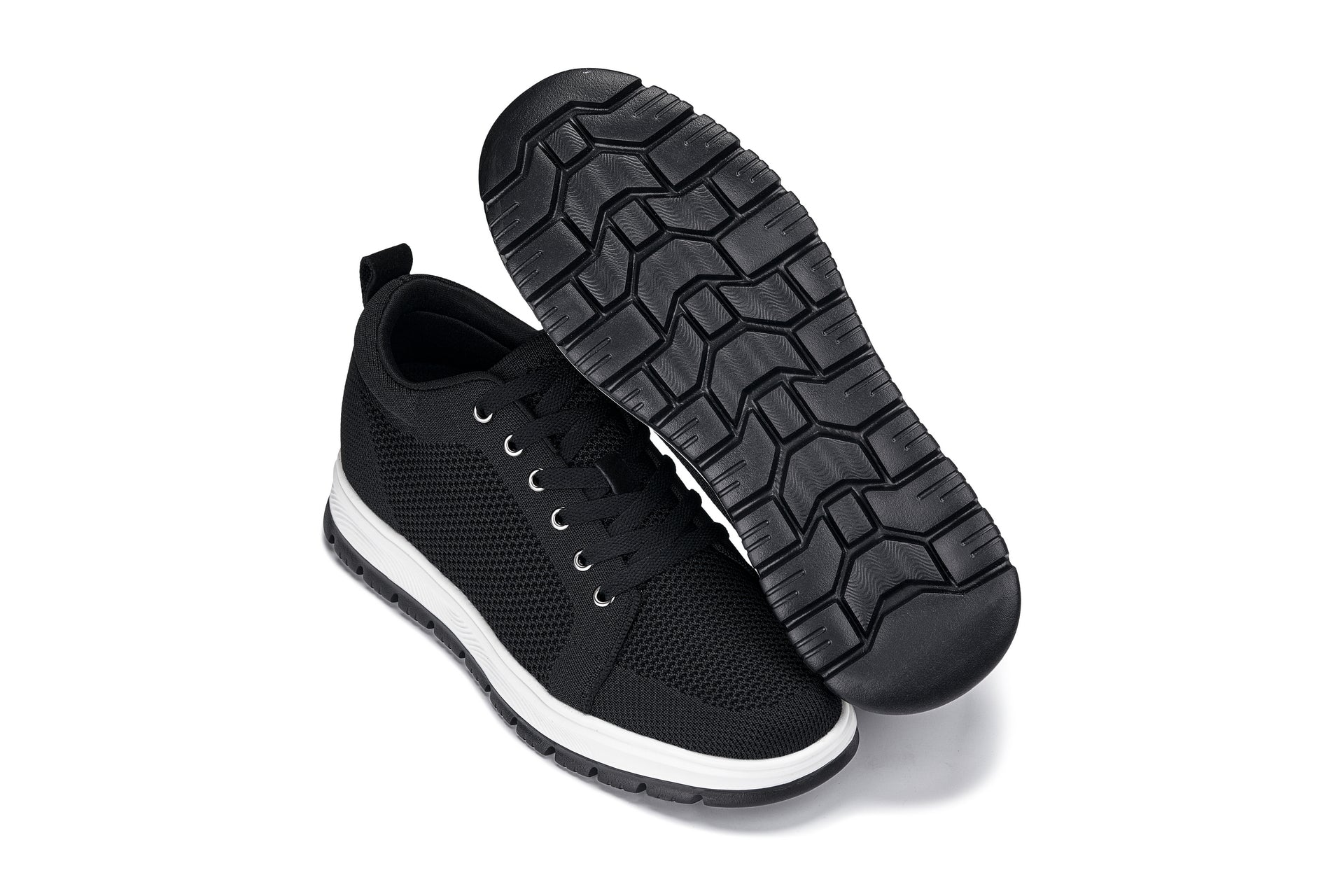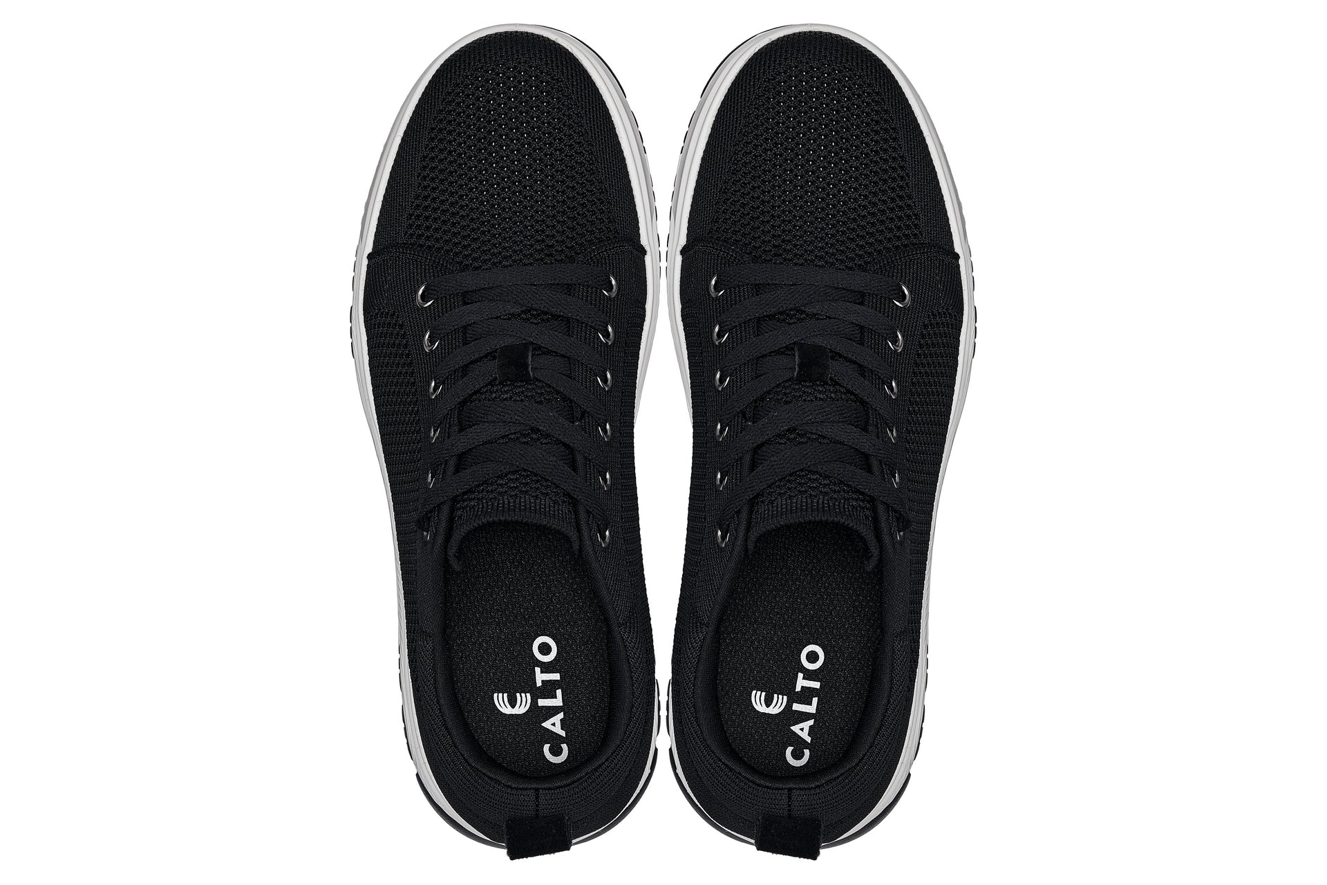 CALTO - X2322 - 2.4 بوصة أطول (أسود/أبيض ونعل أسود) - حذاء كاجوال برباط - خفيف الوزن