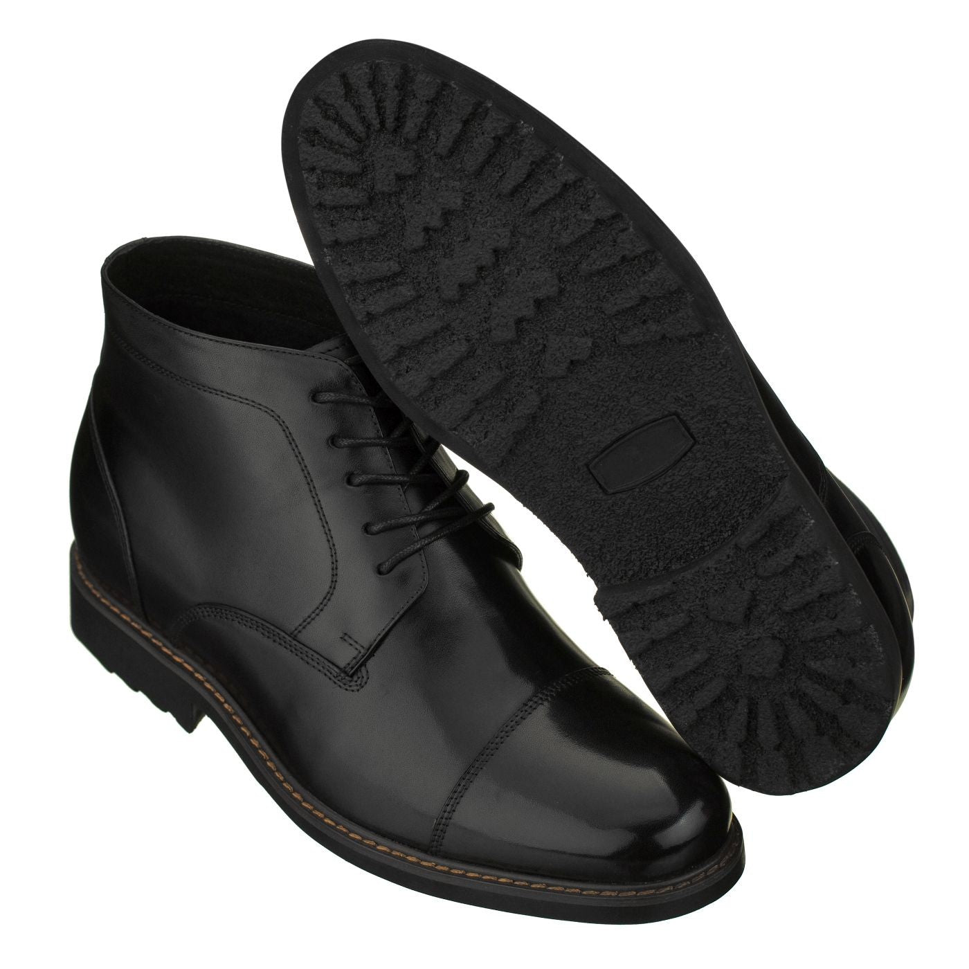Egal, ob es sich um einen lässigen oder formellen Anlass handelt, mit den CALTO Y41080 Dress Boots sehen Sie sofort stilvoll und elegant aus! Dieses Paar aus echtem Ochsenleder hat eine Cap-Toe-Silhouette und ist dank der 3,2-Zoll-Höhenerhöhung genau das Richtige für Herren, die jederzeit aufrecht stehen möchten. Diese hohen Stiefel haben einen Schnürverschluss und eine strukturierte Kreppsohle, die Ihnen ein rutschfreies Gehen ermöglicht.