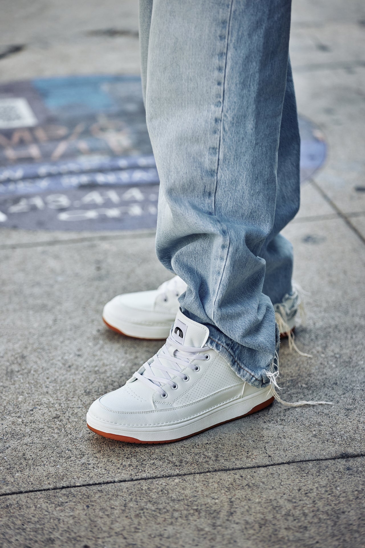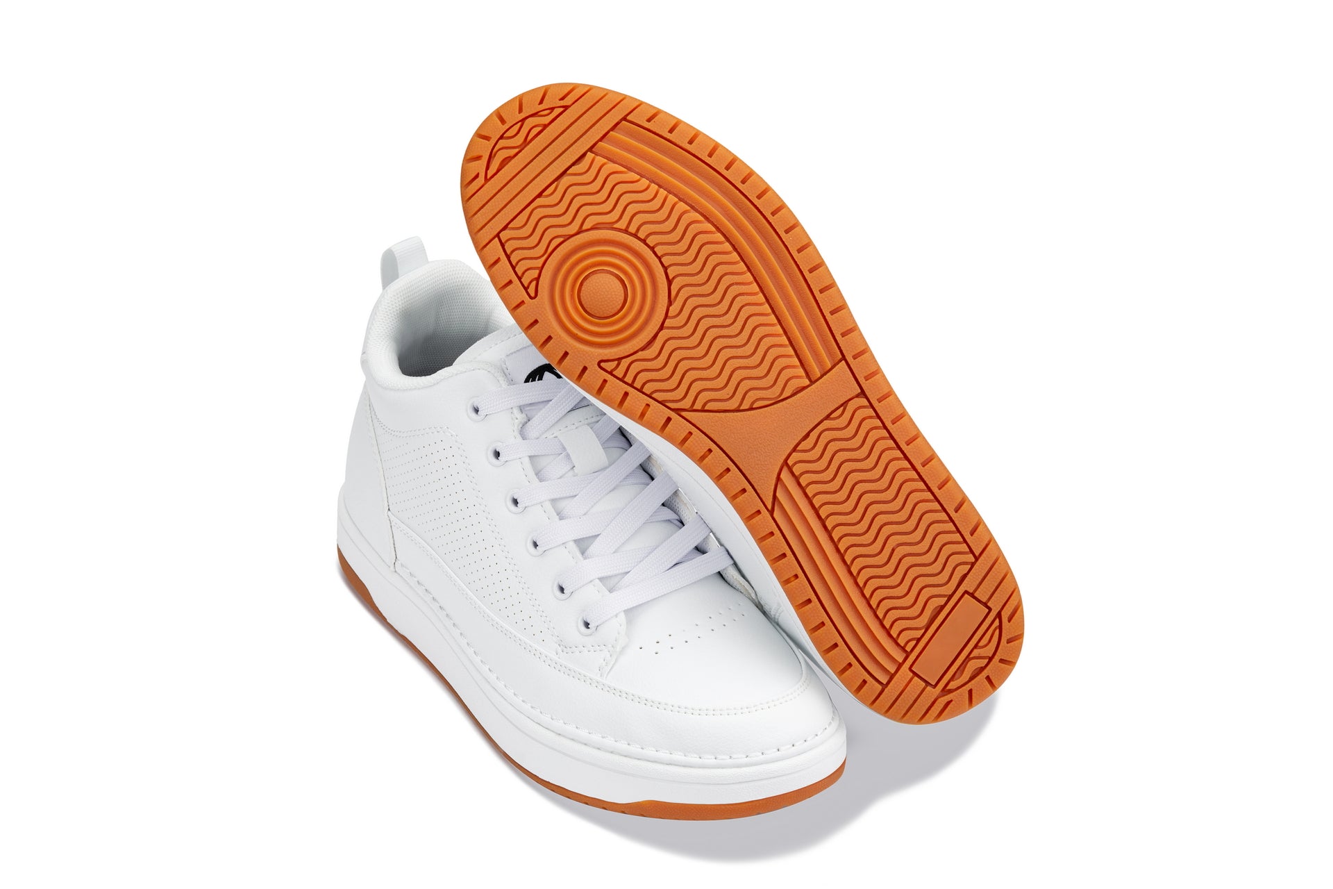 CALTO - Q272 - 2 Inches Taller (White & Gum Sole) -Elevated Leatherette Micro-Perforated Sneakers