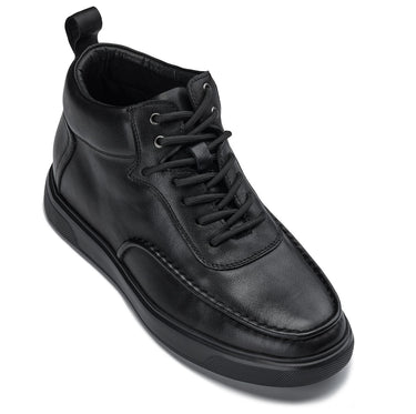 CALTO - Y7112 - 2.8 Inches Taller (Black) - Nappa Leather Moc-Toe Sneak-Boots