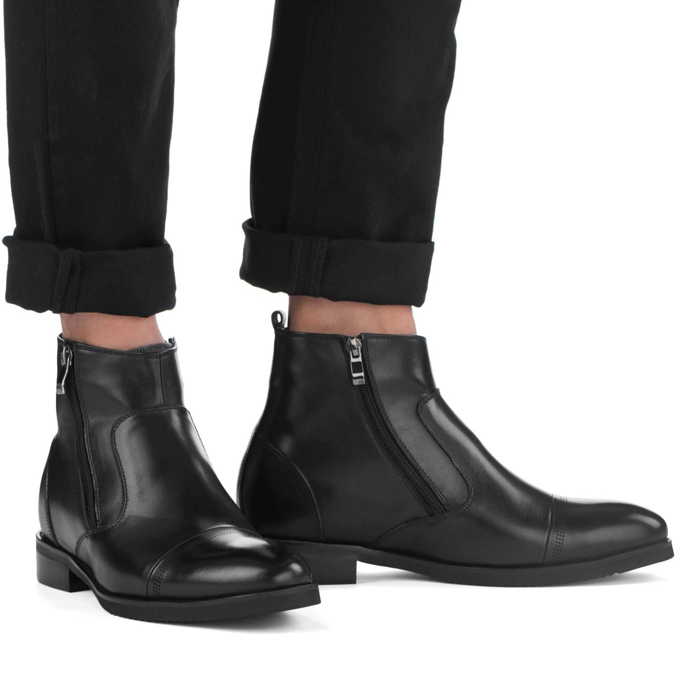 CALTO - S28001 - 3.2 Inches Taller (Black) - Lightweight - Zipper Boots