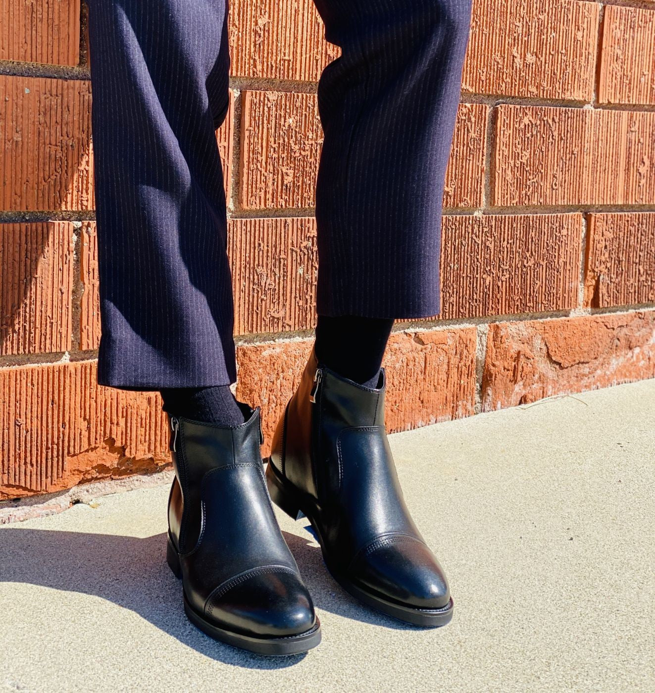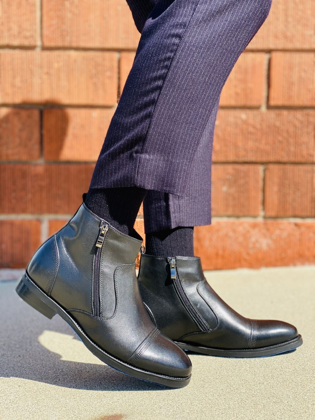 • Style: Ankle top men's boots. Zip-up. Cap toe tip. Dress formal.
