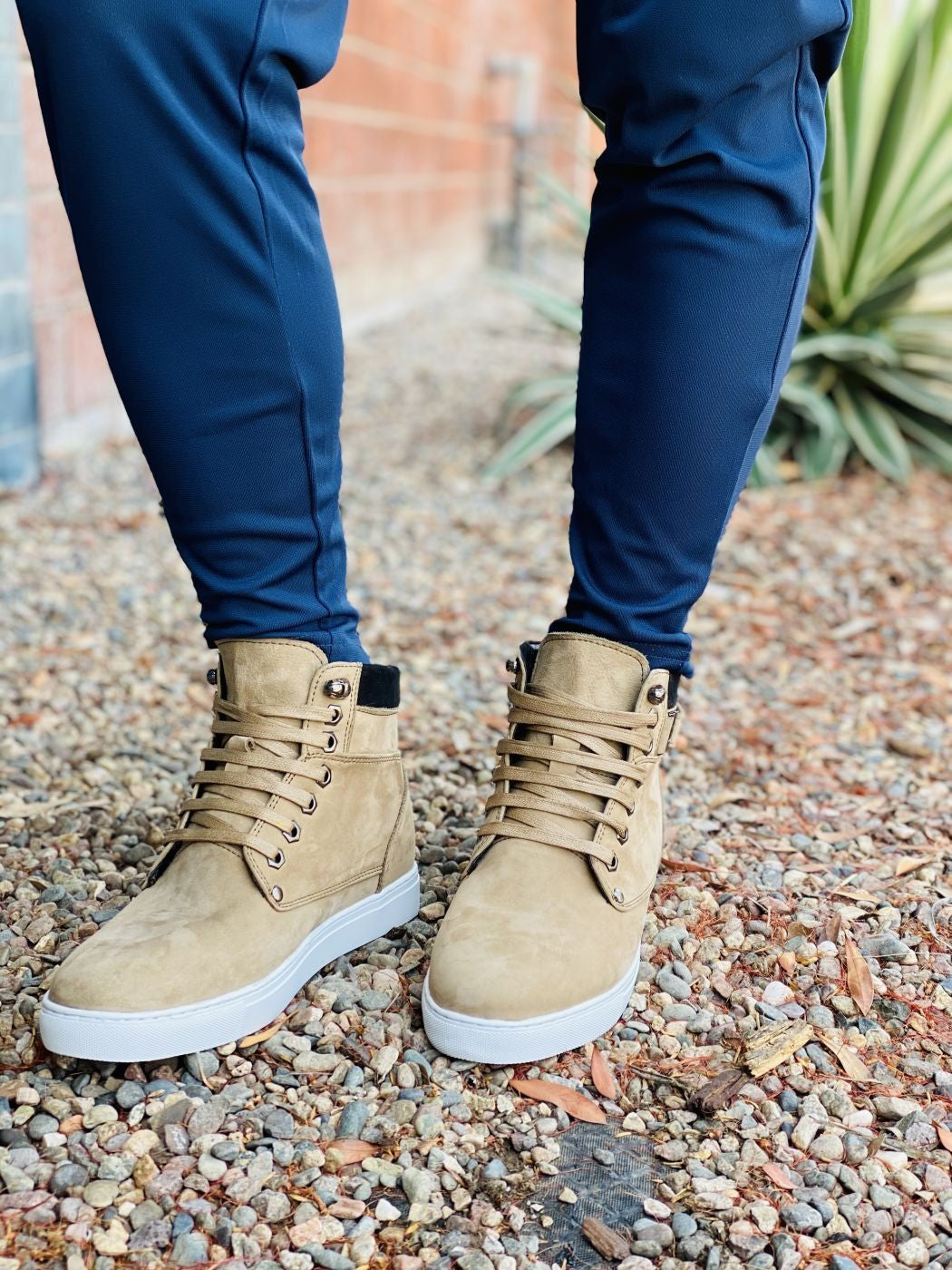 CALTO - T53121 - 2.6 Inches Taller (Nubuck Tan) - High top sneak-boot