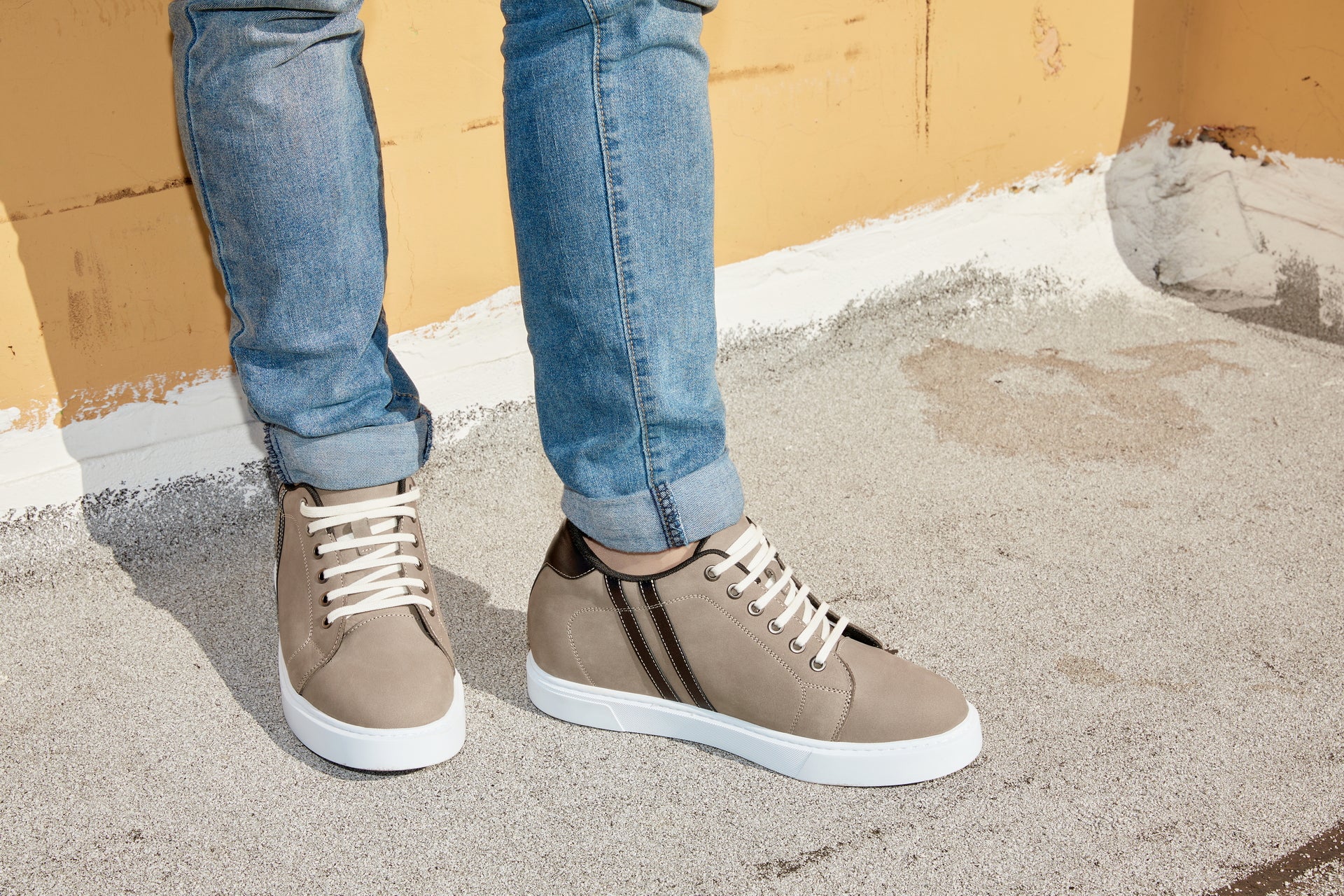 CALTO - K1550 - 2.8 Inches Taller (Nubuck Grey) - Lace Up Casual Sneakers