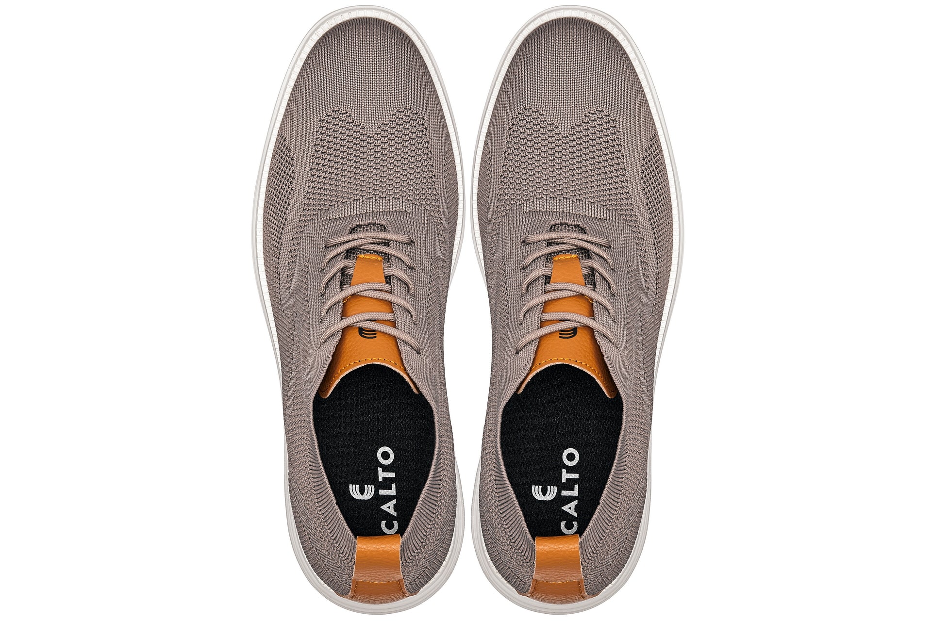 Elevate your style and confidence effortlessly with the CALTO X2638, lightweight sneakers designed for a subtle height boost and exceptional comfort. Instantly enhance your posture and stature with these modern mid-top shoes, featuring a precisely crafted knit upper, a mesh-padded collar, and a practical pull tab. The soft knit lining inside ensures extra room for a personalized, comfortable fit.