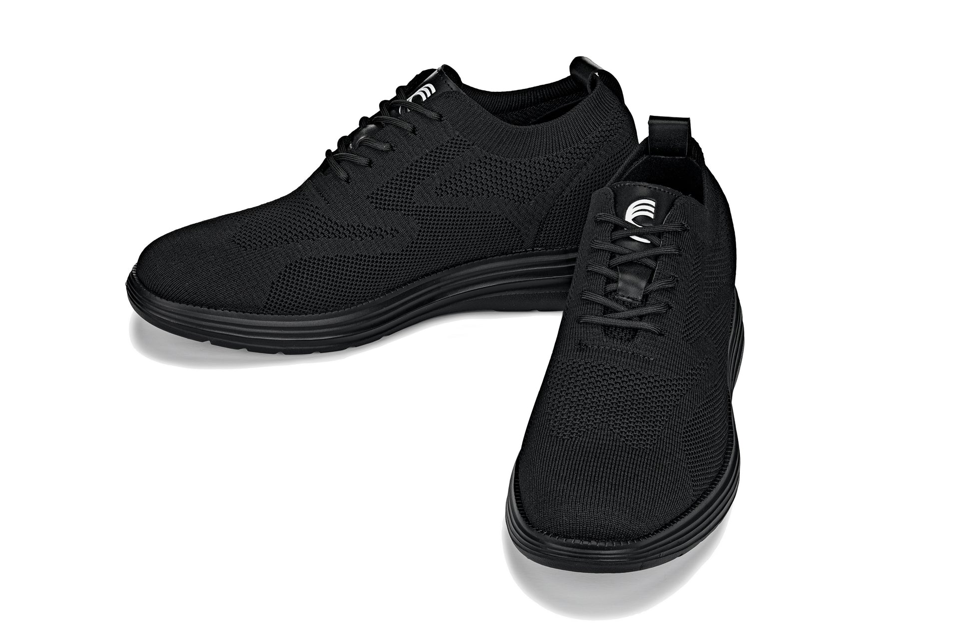 CALTO - X2631 - 2.8 Inches Taller (Black/Black Sole) - Lace Up Casual Walker - Lightweight
