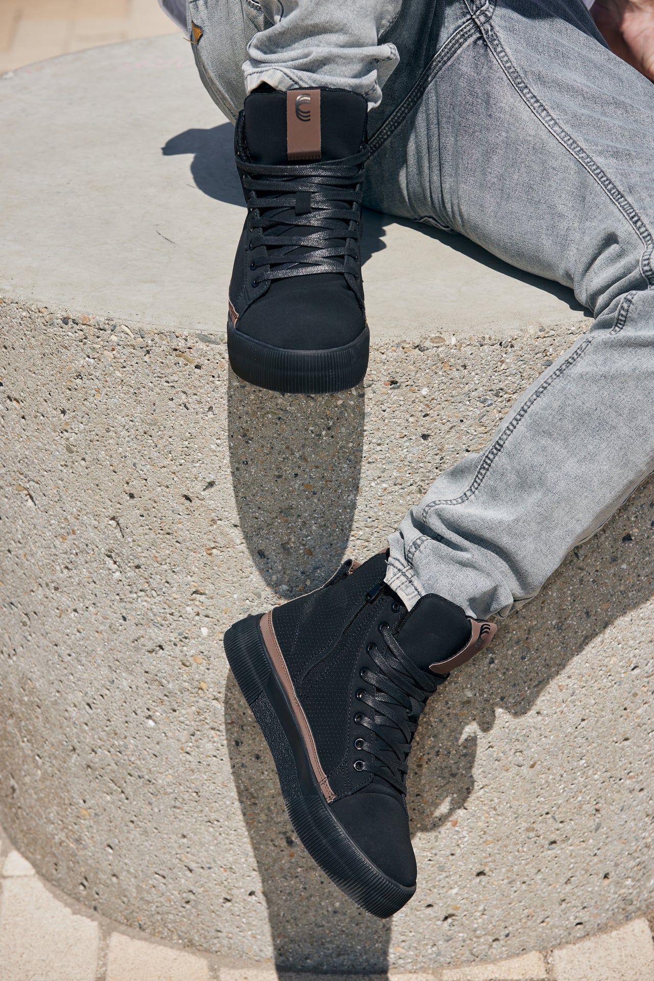 CALTO - S3422 - 2.4 Pulgadas Más Alto (Negro/Marrón Café) - Botas Deportivas de Tobillo con Punta Redonda y Cremallera