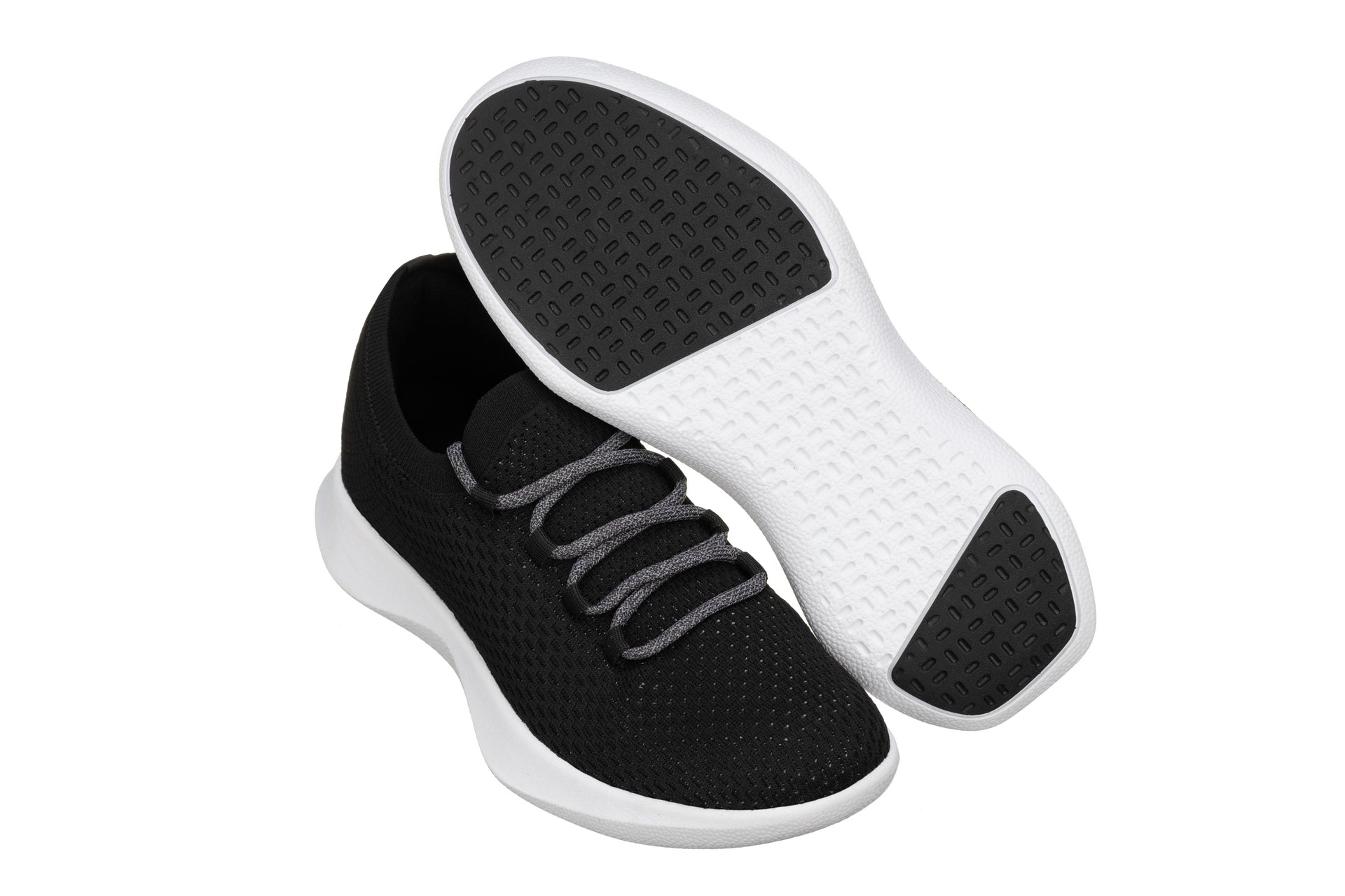 Elevator shoes height increase CALTO - X1658 - 2 Inches Taller (Black/Knitted Dark Gray)