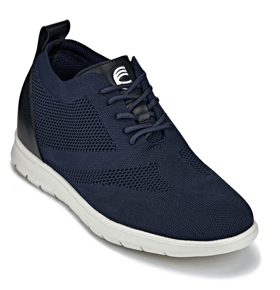 CALTO - X2214 - 2.4 Pulgadas Más Alto (Azul Noche/Negro) - Zapato Casual con Cordones - Ligero