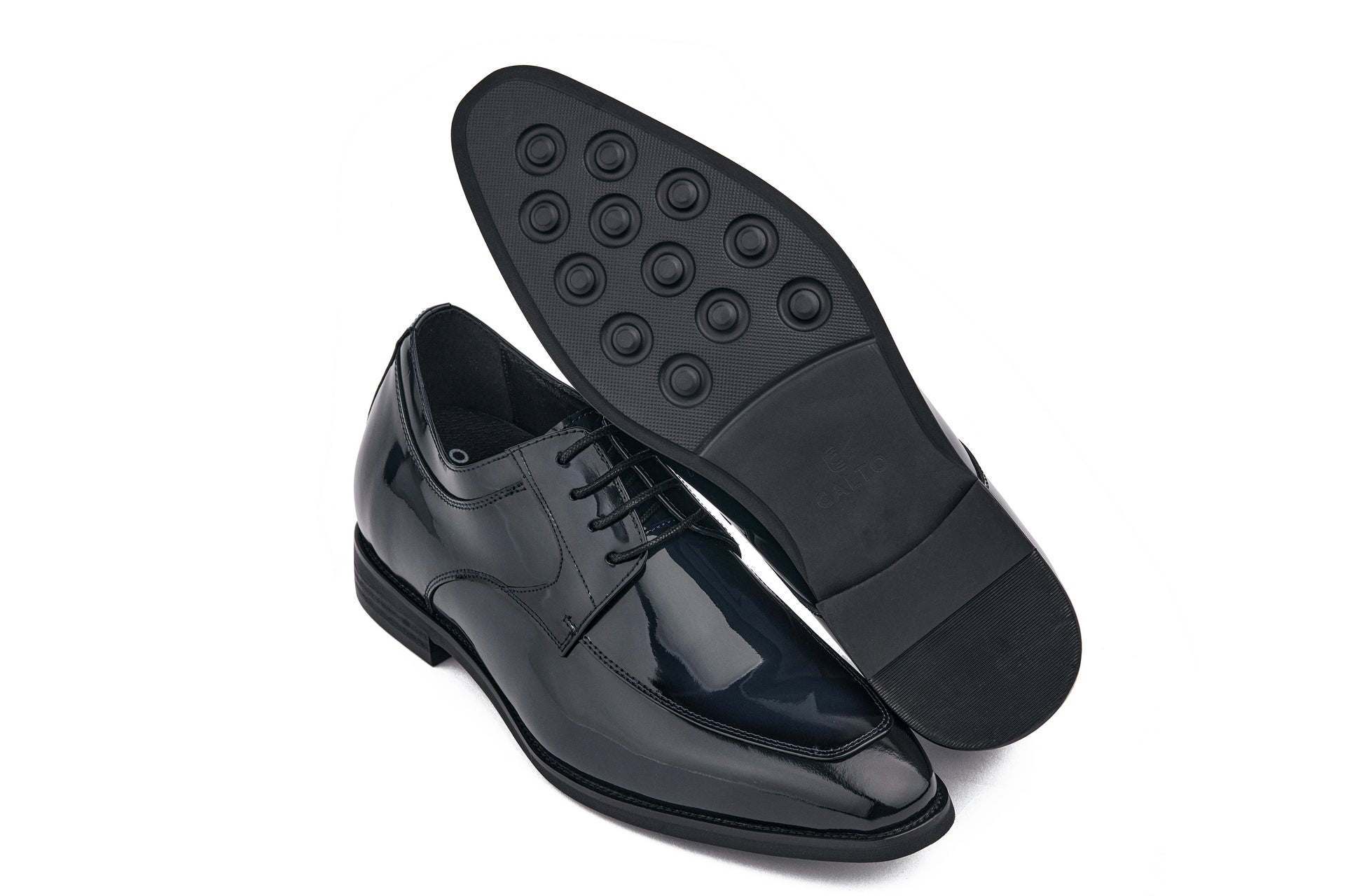 CALTO - K2712 - 2.8 pulgadas más alto (azul medianoche) - Vestido Derbies de charol