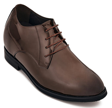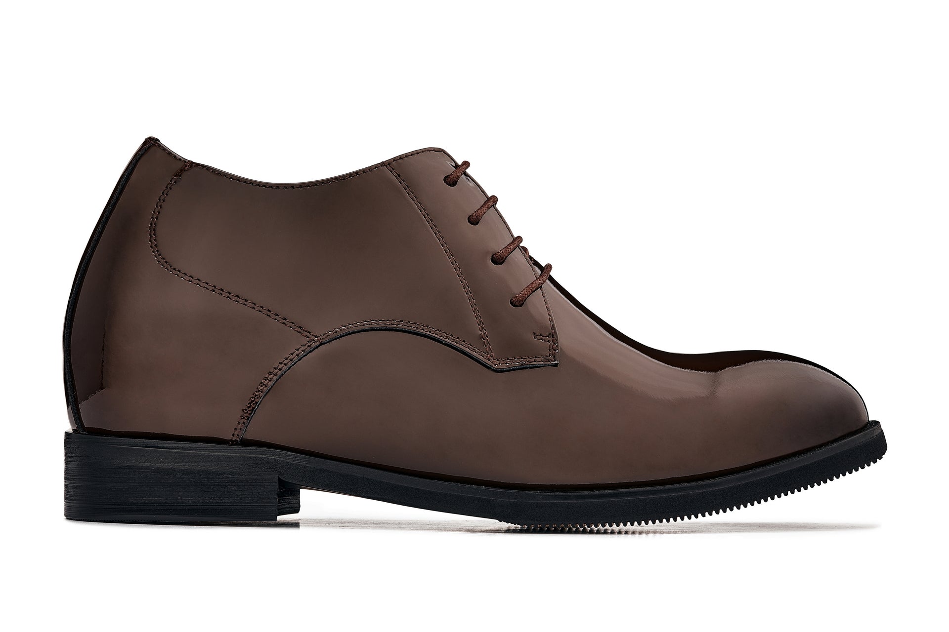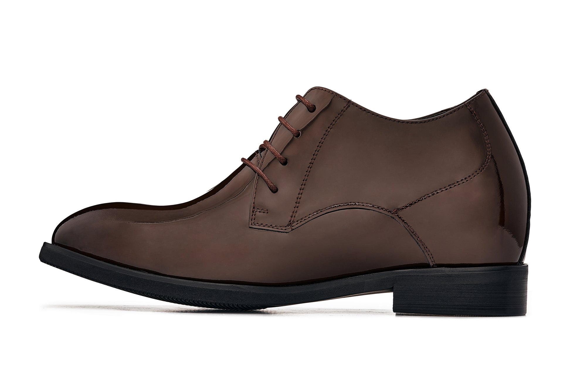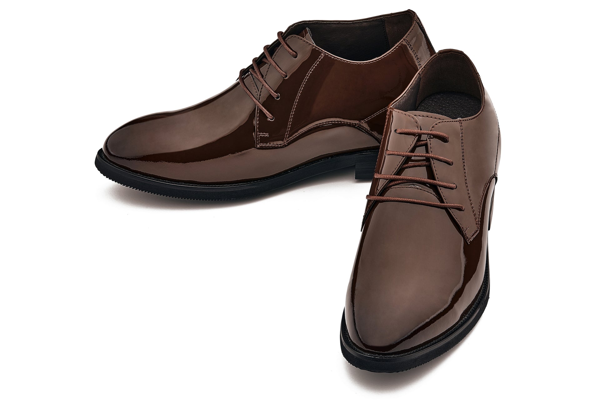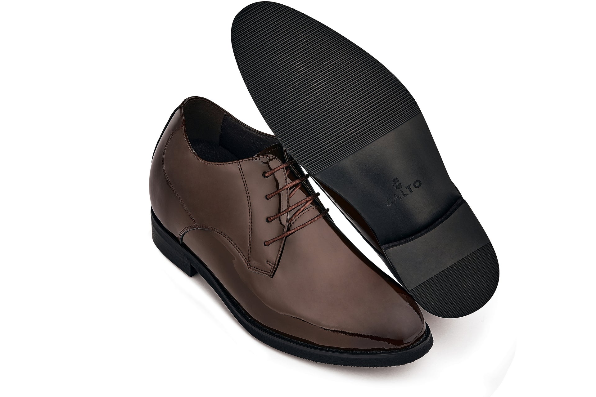 CALTO - K8011 - 3.4 Pulgadas Más Alto (Café Marrón) - Zapatos de Vestir Derby de Cuero de Patente