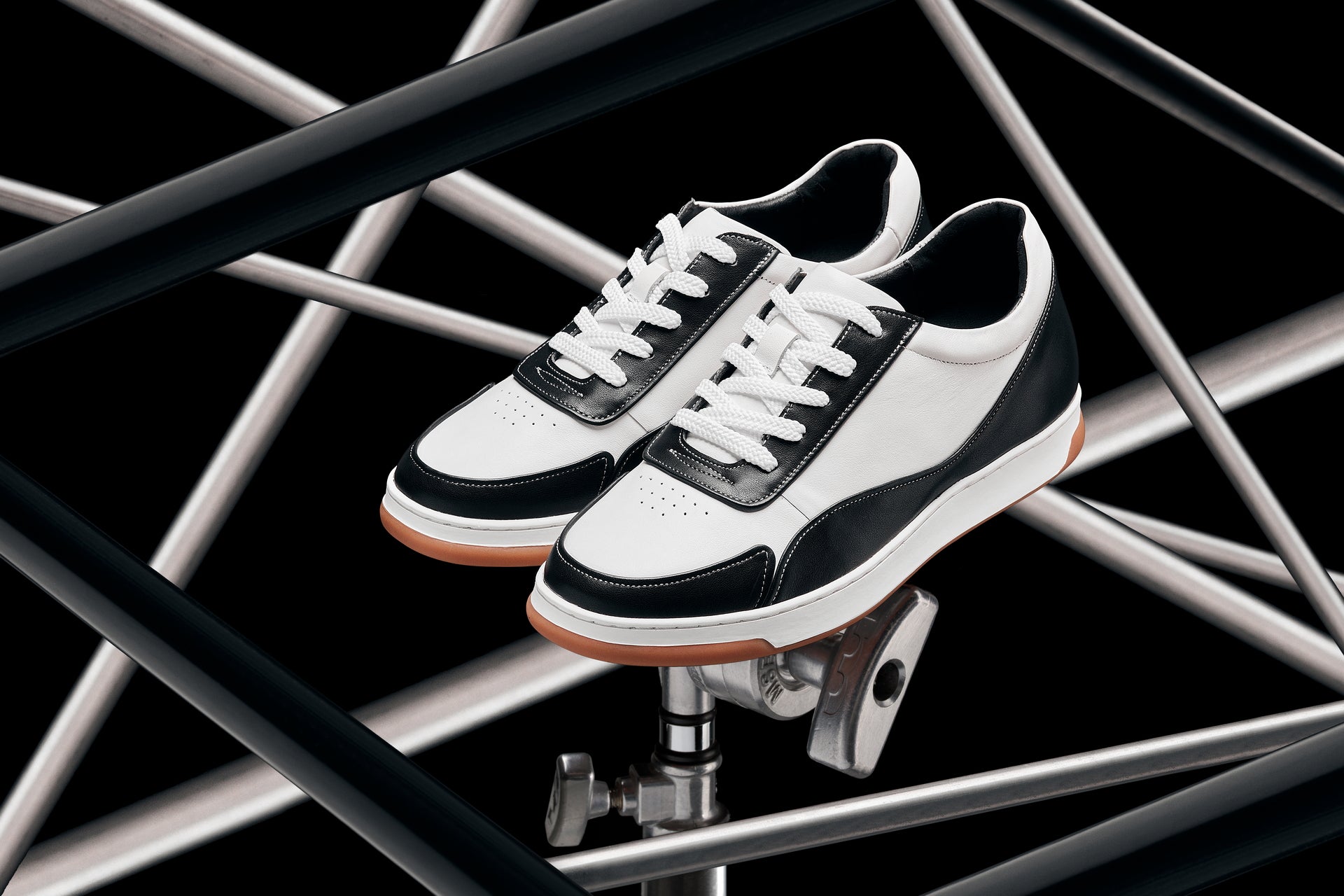 CALTO - Y7884 - 2.6 Pulgadas Más Alto (Negro/Blanco/Blanco y Suela de Goma) - Zapatillas de Cuero Elevadas