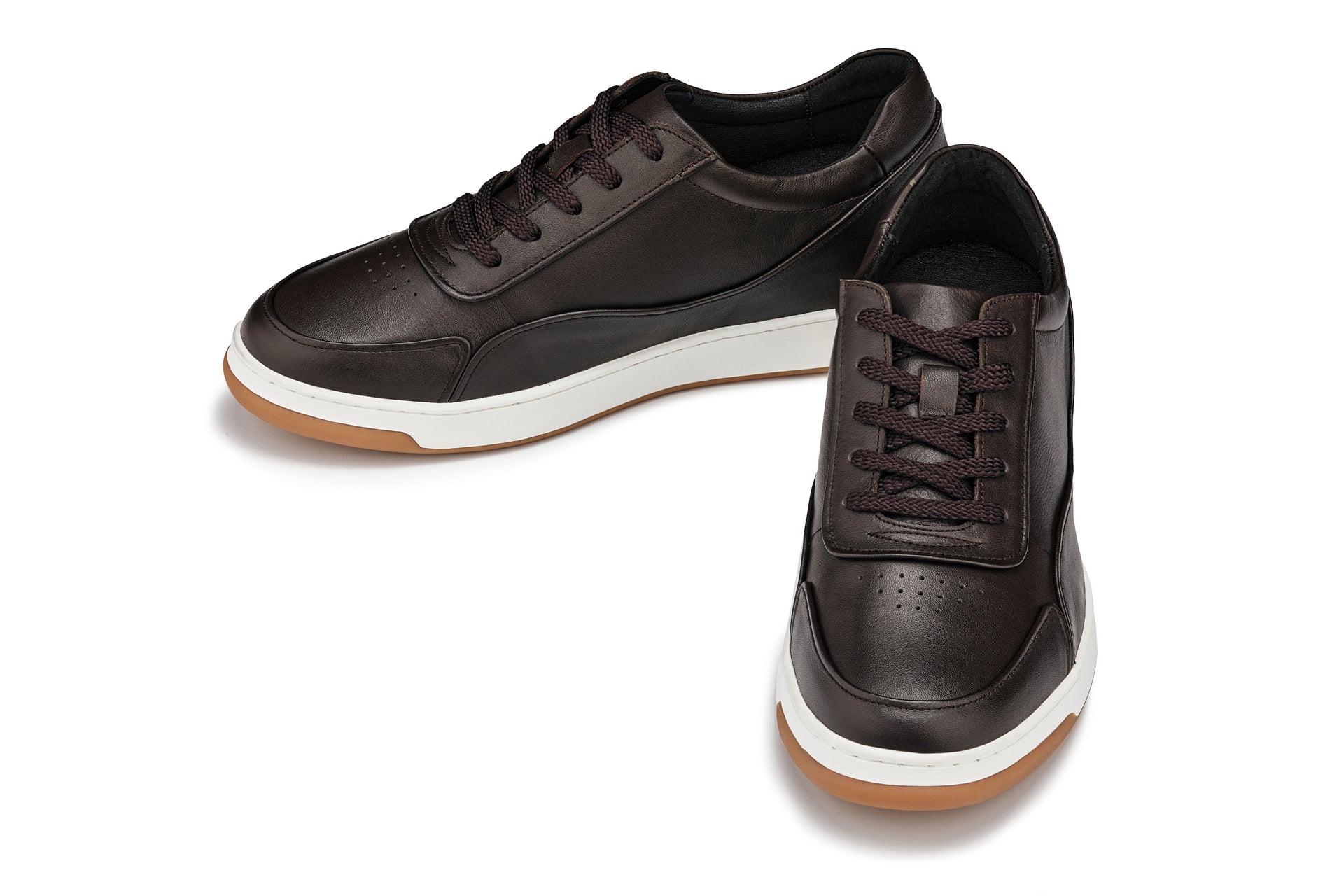 CALTO - Y7887 - 2.6 Pulgadas Más Alto (Espresso Profundo/Blanco y Suela de Goma) - Zapatillas de Cuero Elevadas
