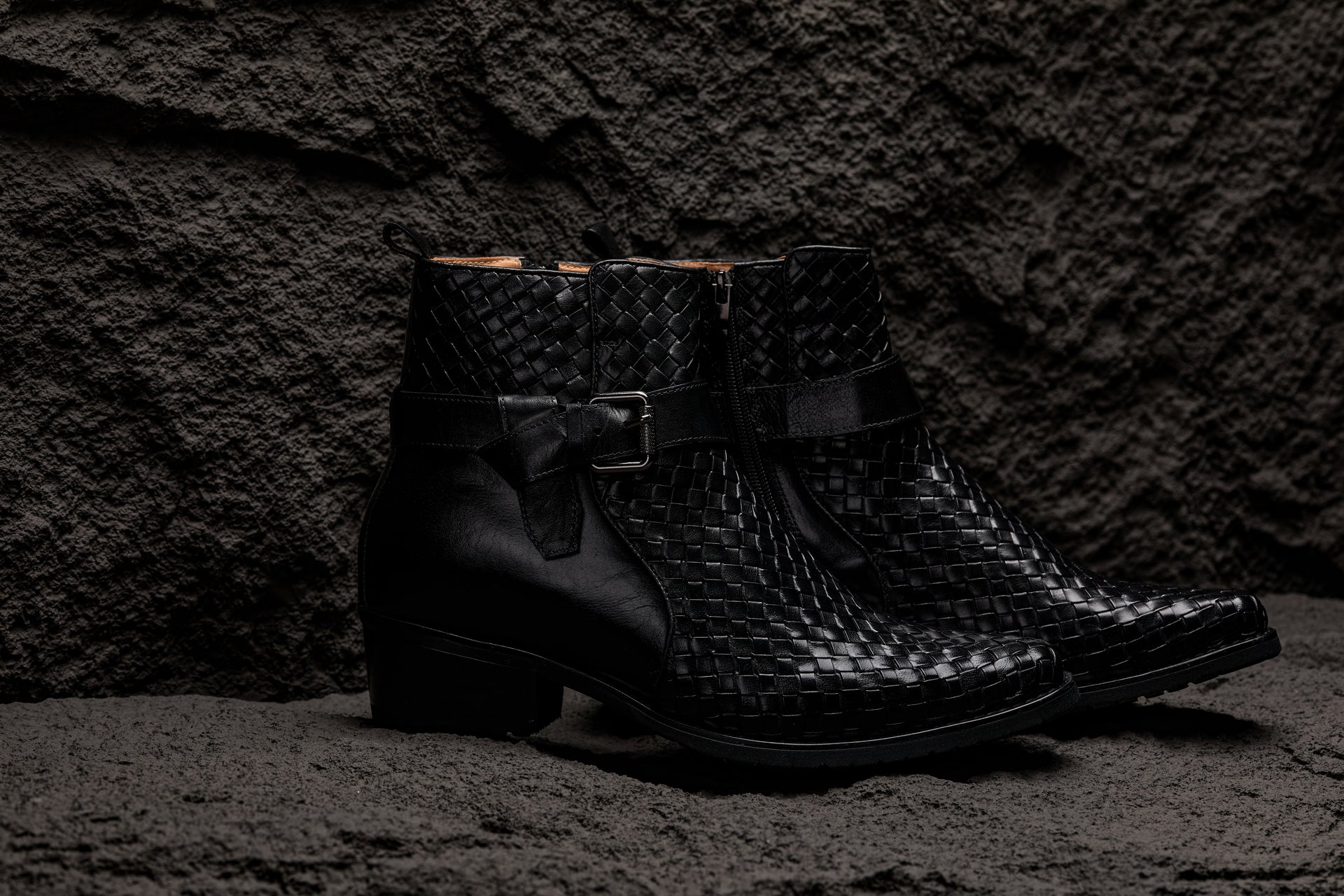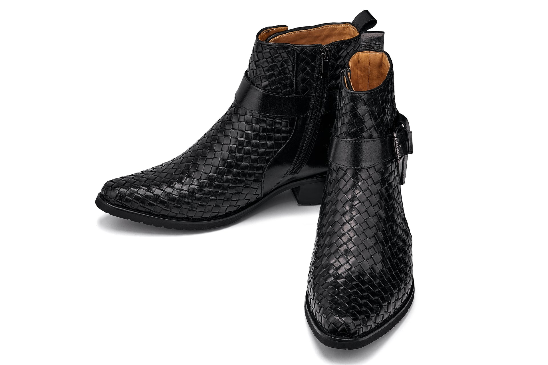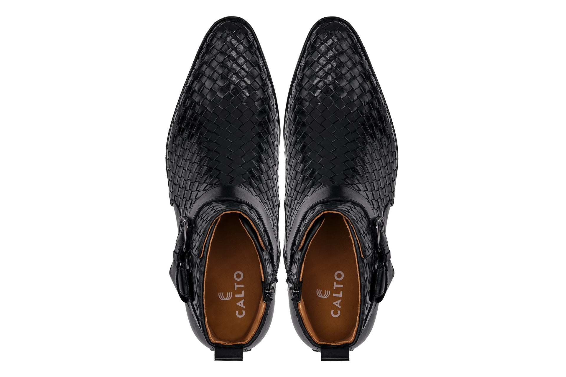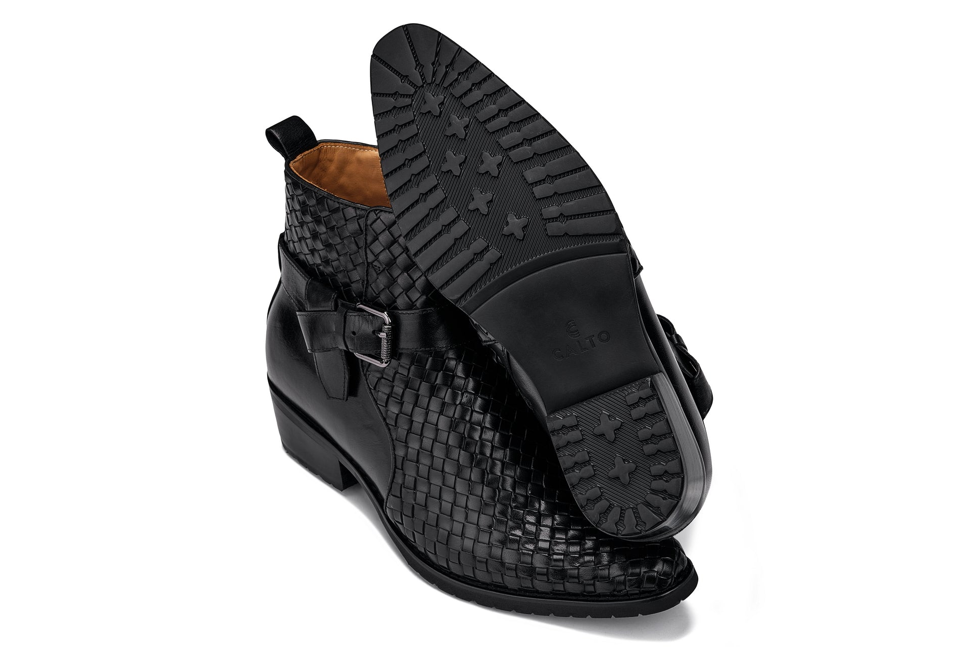 CALTO - K30523 - 3.3 Pulgadas Más Alto (Negro) - Botas de Tobillo con Hebilla y Cremallera de Tejido Alto
