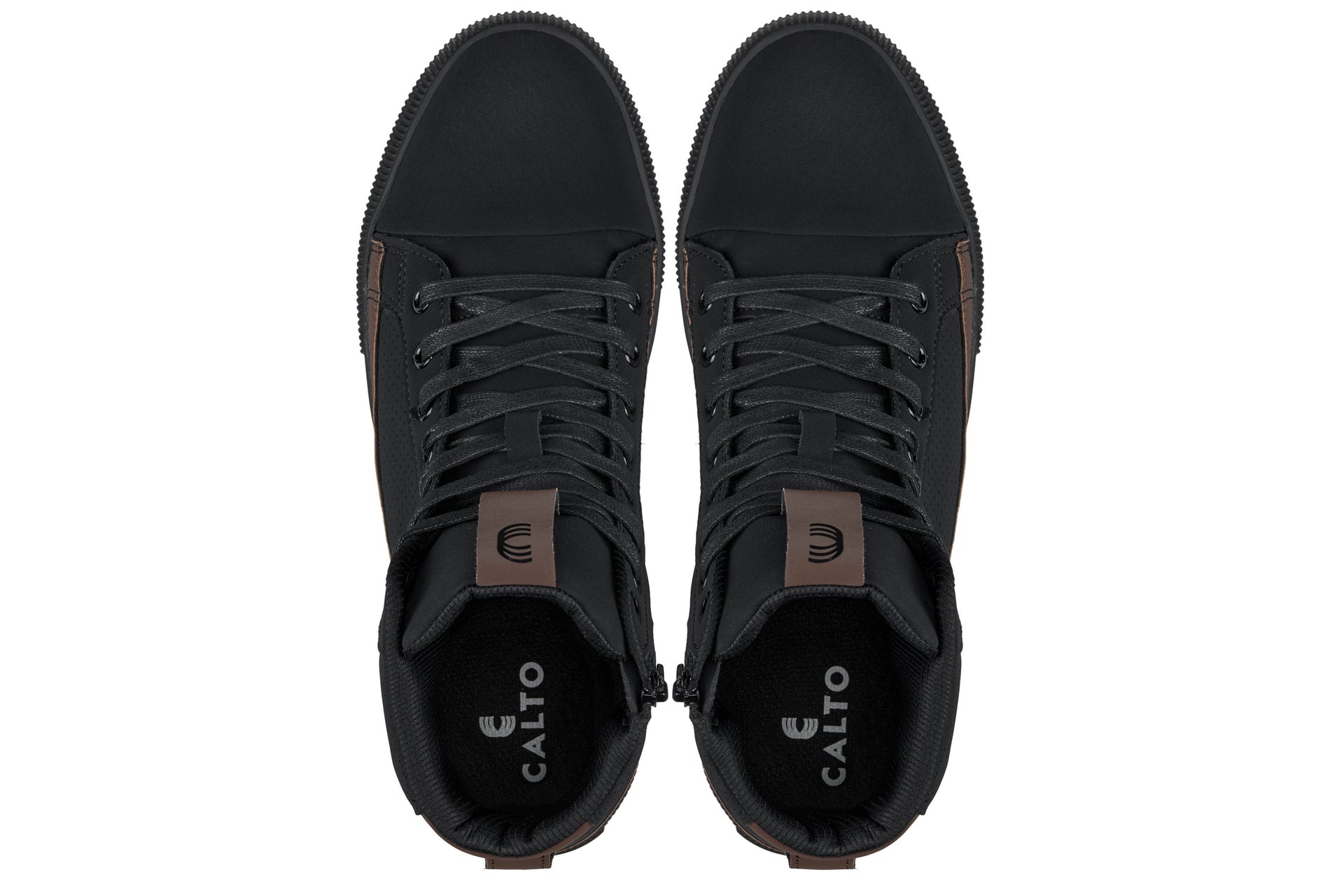 CALTO - S3422 - 2,4 pouces plus grand (Noir/Marron Café) - Bottines à lacets avec fermeture éclair et bout capuchon