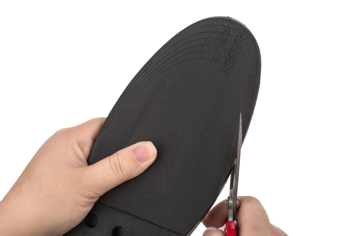 Avec une paire de ciseaux bien aiguisés, vous pouvez facilement adapter ces rehausseurs de semelles en utilisant le guide des tailles imprimé au bas de chaque semelle. Choisissez une taille Petite pour les tailles de chaussures pour hommes U.S. 5.5 à 8. Choisissez une taille Grande pour les tailles de chaussures pour hommes U.S. 8.5 à 12. Ensuite, il vous suffit de couper la semelle pour l'adapter à la taille de votre pied.