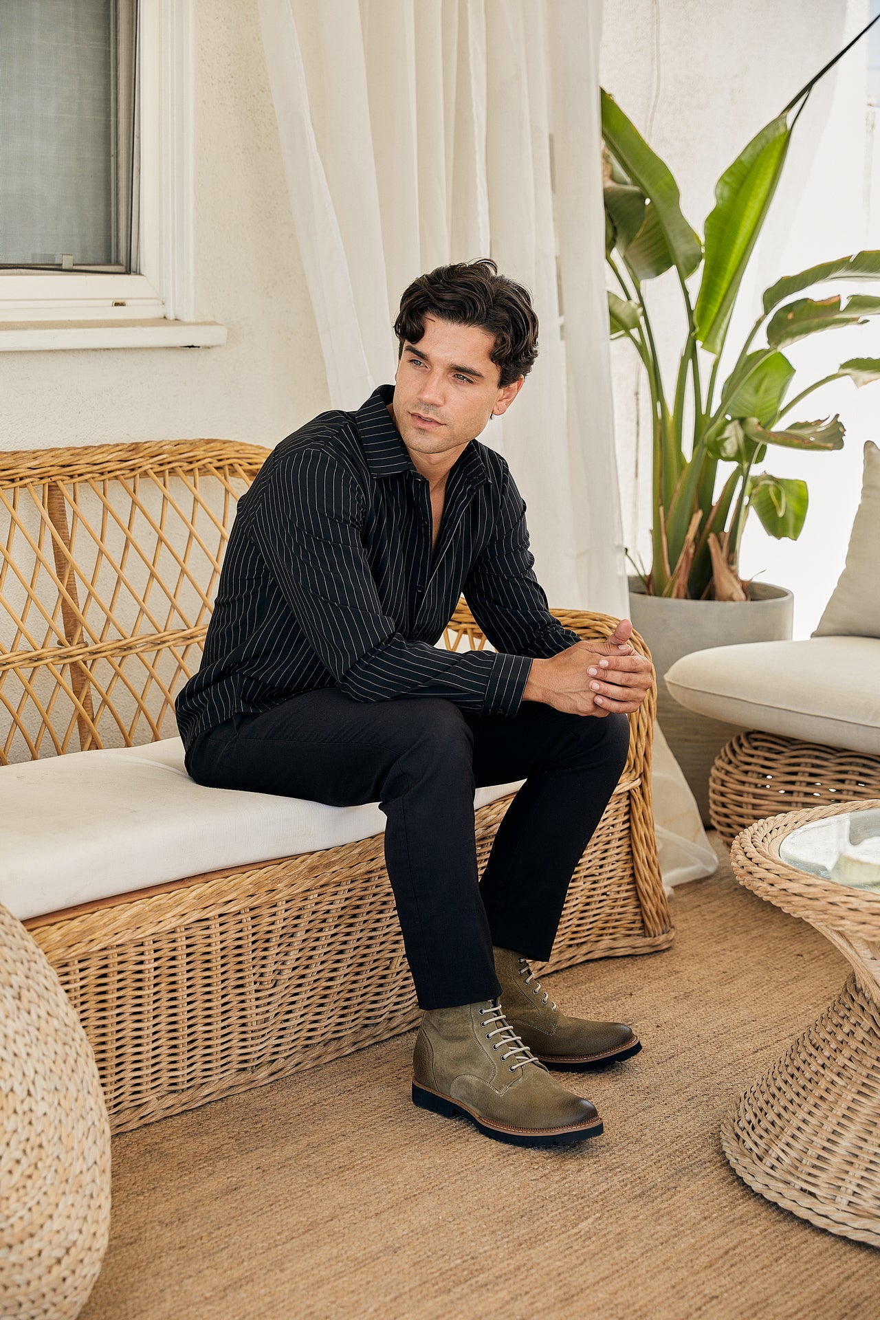 Geef je stijl een boost met deze strakke nubuckleren laarzen met een handige ritssluiting. Ze zijn niet alleen ongelooflijk licht van gewicht, maar ze beschikken ook over een unieke mantelversterkende functie die direct hoogte aan je gestalte toevoegt. Zeg vaarwel tegen ongemakkelijke en zware schoenen en hallo tegen de ultieme mix van comfort, stijl en functionaliteit.