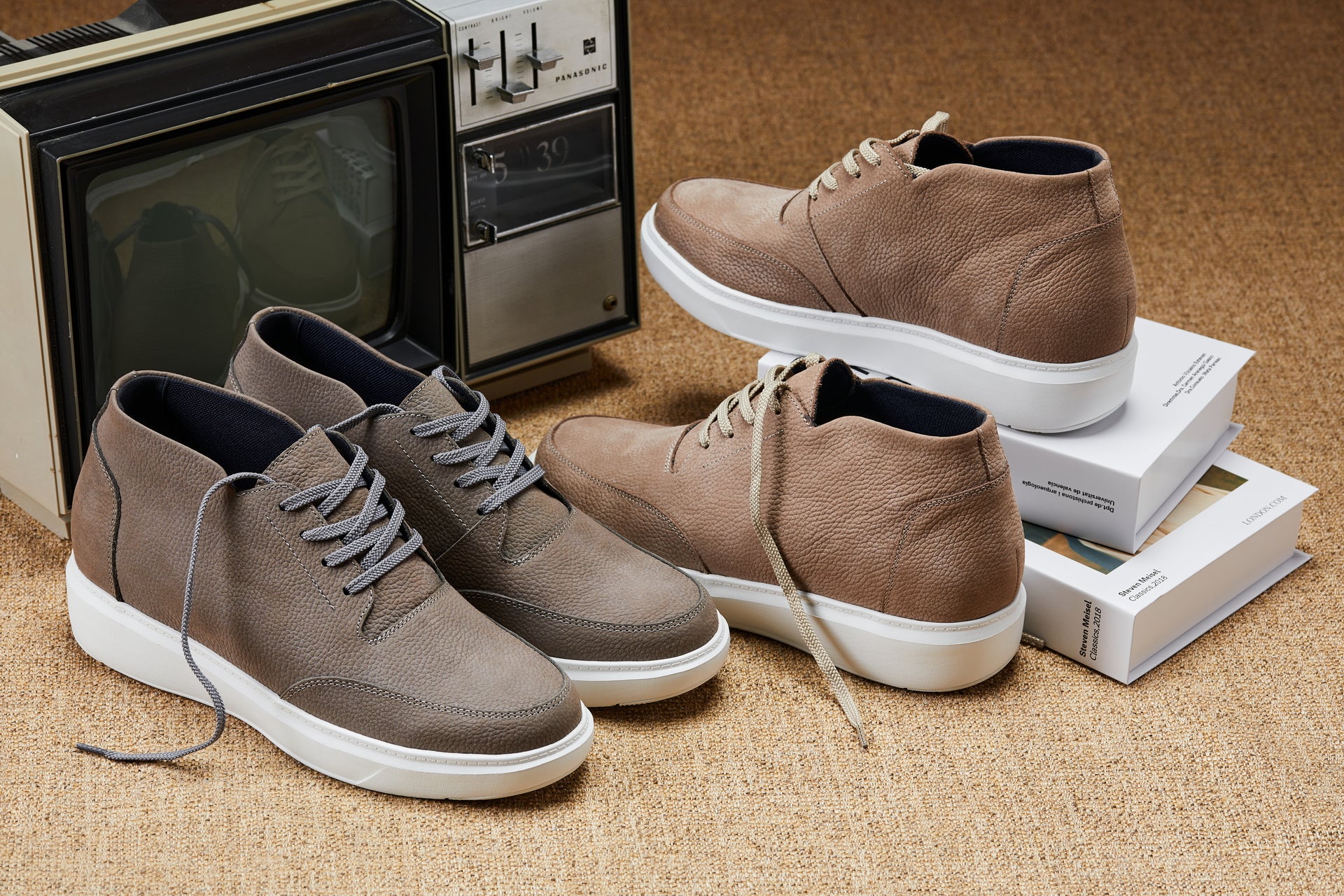 CALTO - J1770 - 3.2 Inches Taller (Khaki) - Casual Chunky Sole Boots – Soft Pebble Grain Nubuck Leather