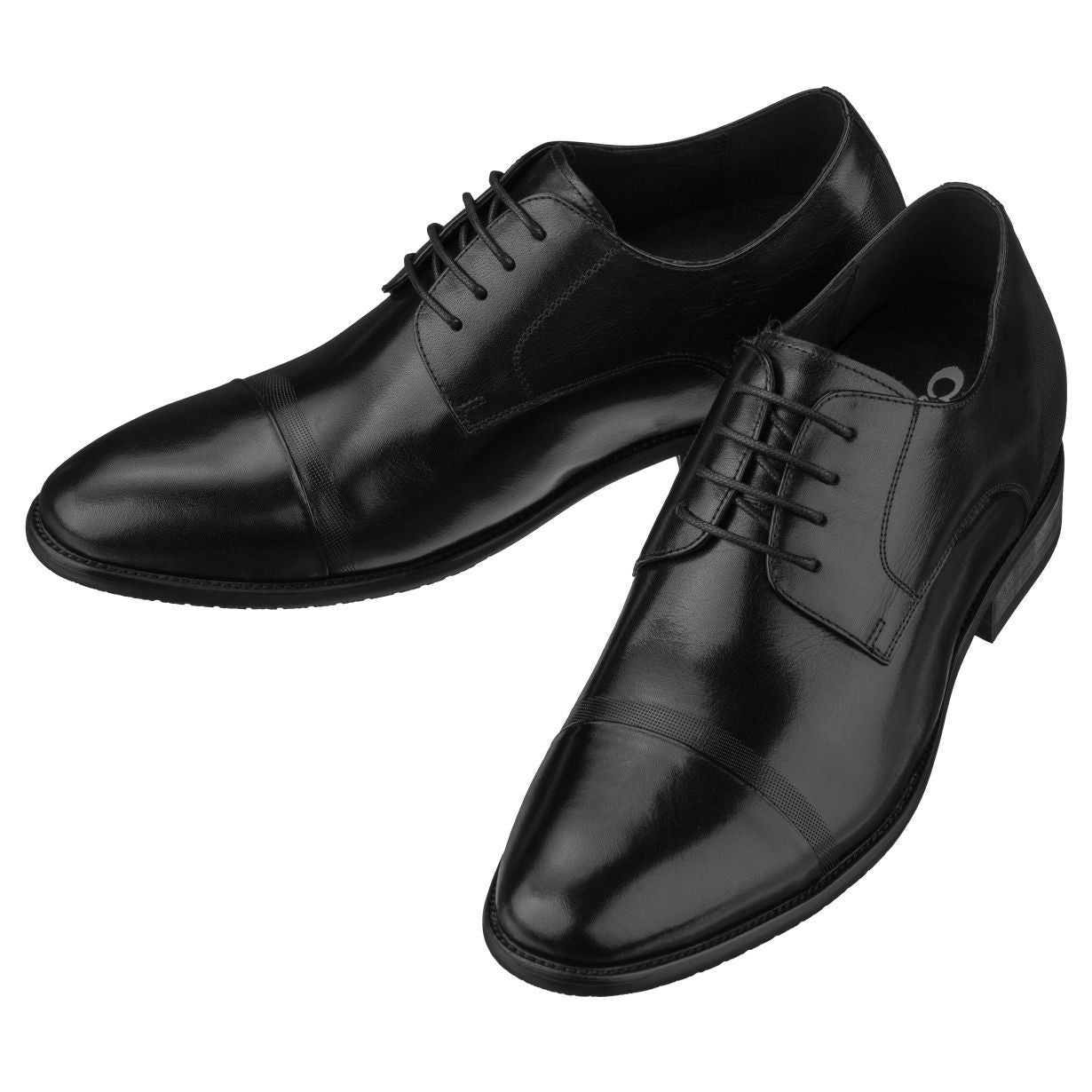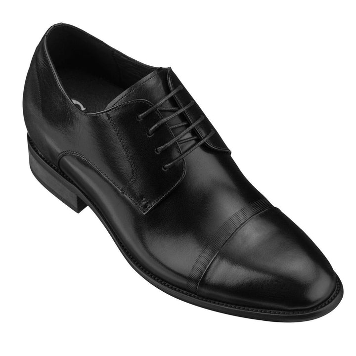 The CALTO - Y1004 - 3 Inches Taller (Black) - premium leather mens lace-up oxford is a simplistic classic style with a modern twist. This dress formal shoe features a cap toe with slight micro-perforated accent. Its Goodyear welt construction is stitched together which provides an aesthetical appeal as well as durability with minimal maintenance. Handsome bespoke look and finely stitched for extra durability and style, the soft quality leather upper offers a seam tracing stitched collar with a reinforced counter. The soft hidden increaser allows adequate room for your foot which makes you appear taller without being obtrusive.