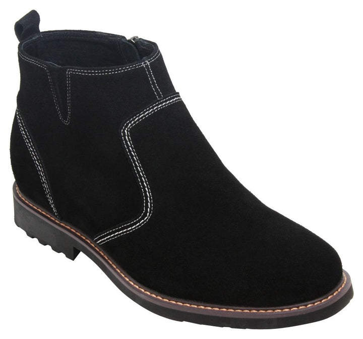 CALTO - Y41082 - 3.2 Inches Taller (Nubuck Black) - Zipper Boots